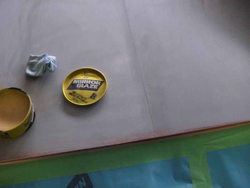 Meguiars mold relese wax, right side of line is waxed and left is just clean primer